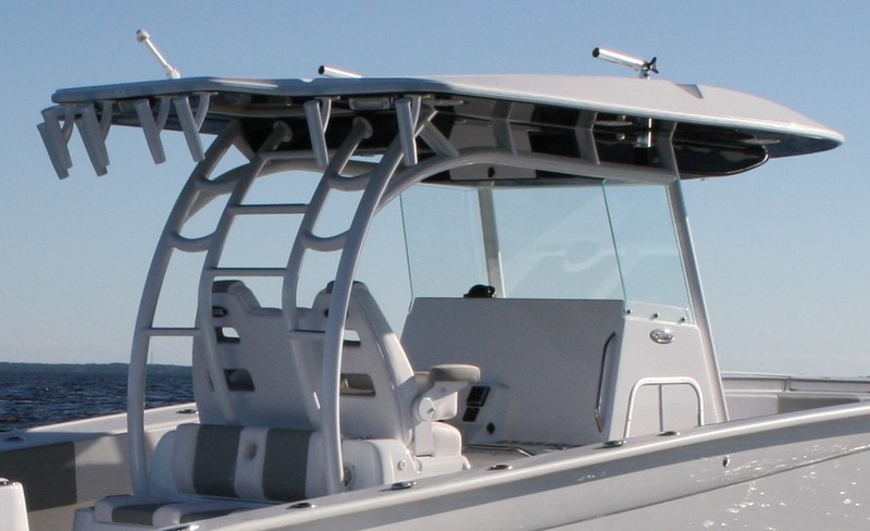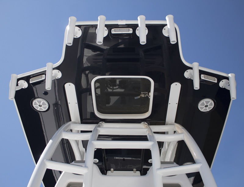 An oversized hardtop provides a sleek and modern design that easily accepts a second station if desired. The two large boxes above provide plenty of storage for all your gear. All will appreciate a host of lighting options, (6) flush mounted speakers and standard telescoping outriggers.